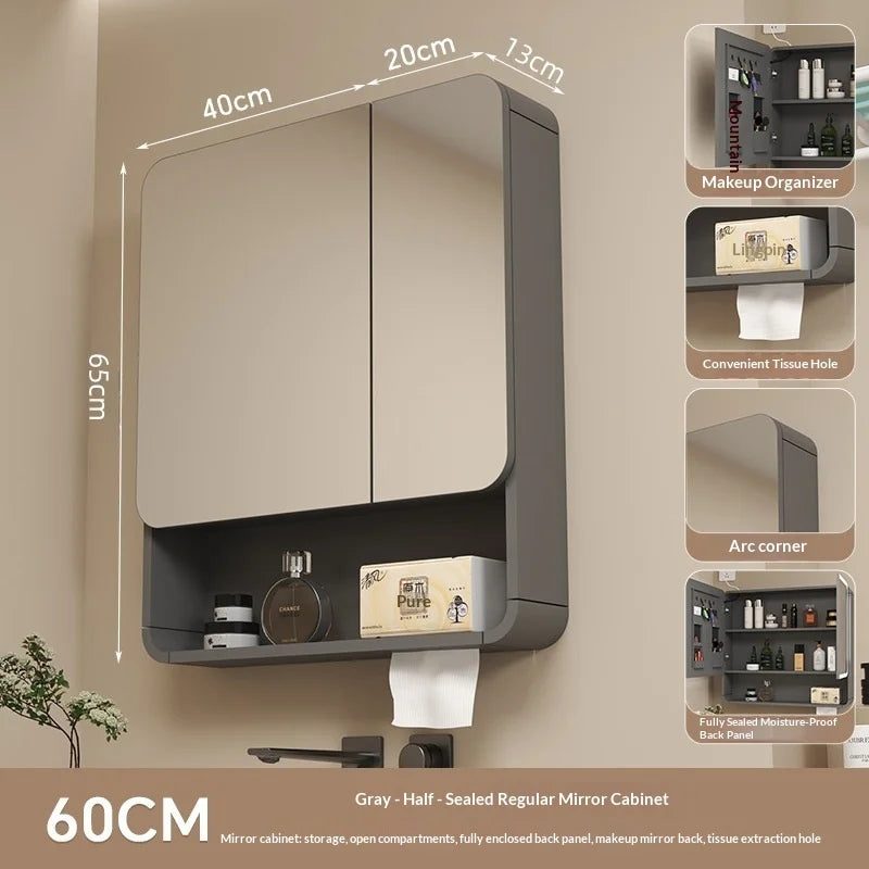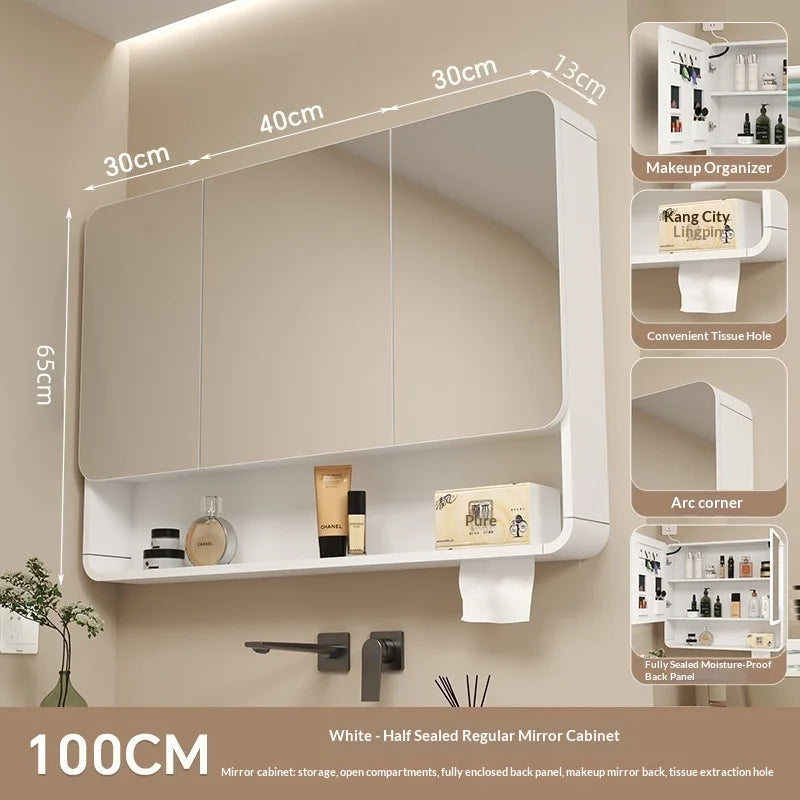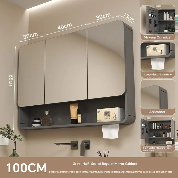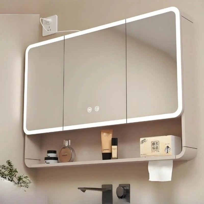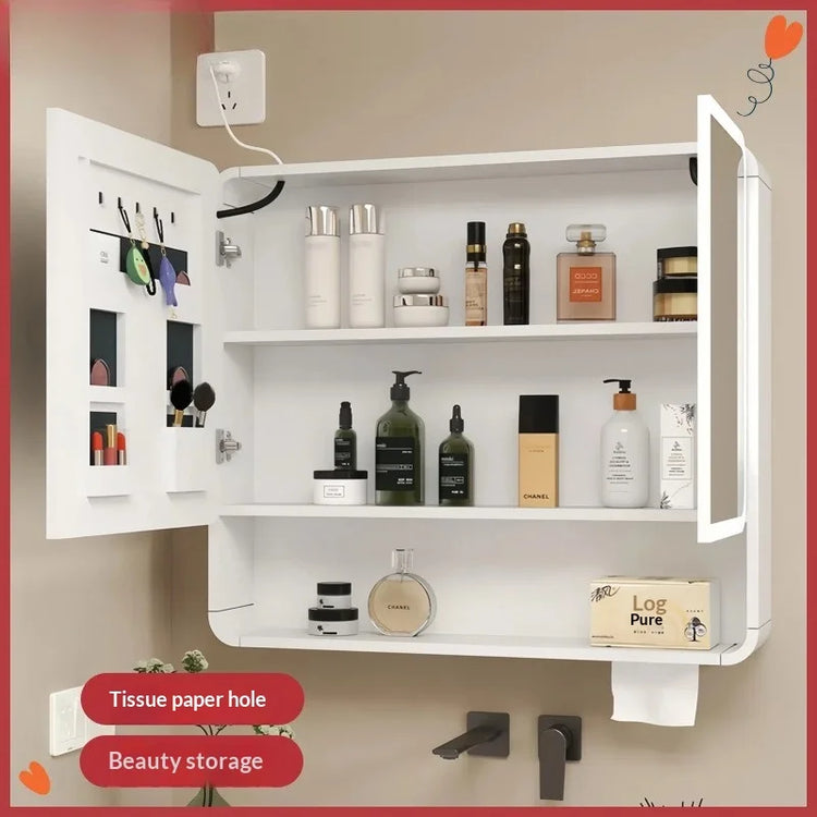 Bathroom Mirror with LED Lighting,With Smart Storage Cabinet