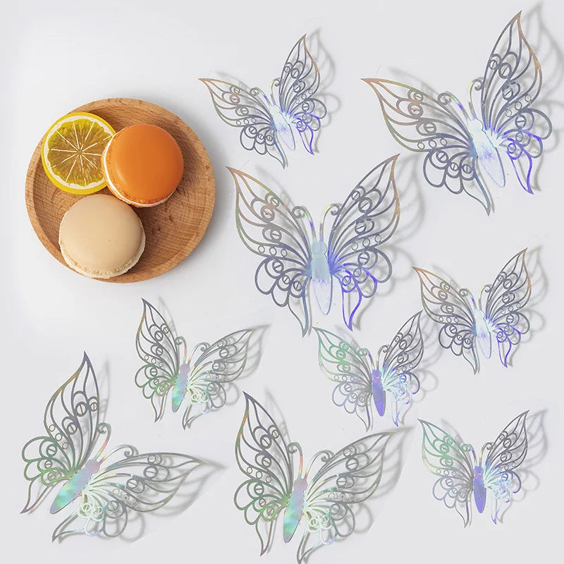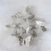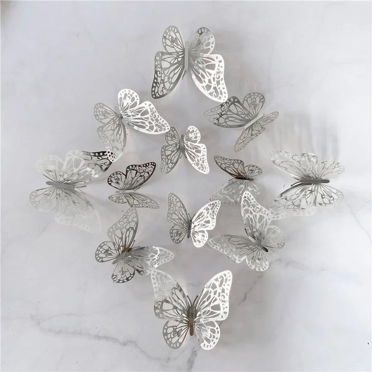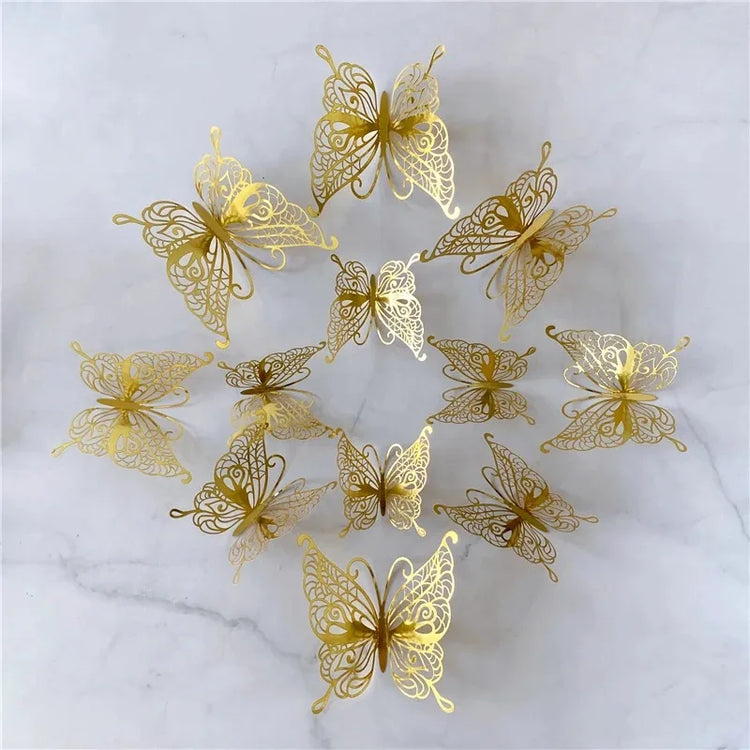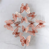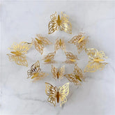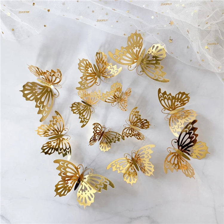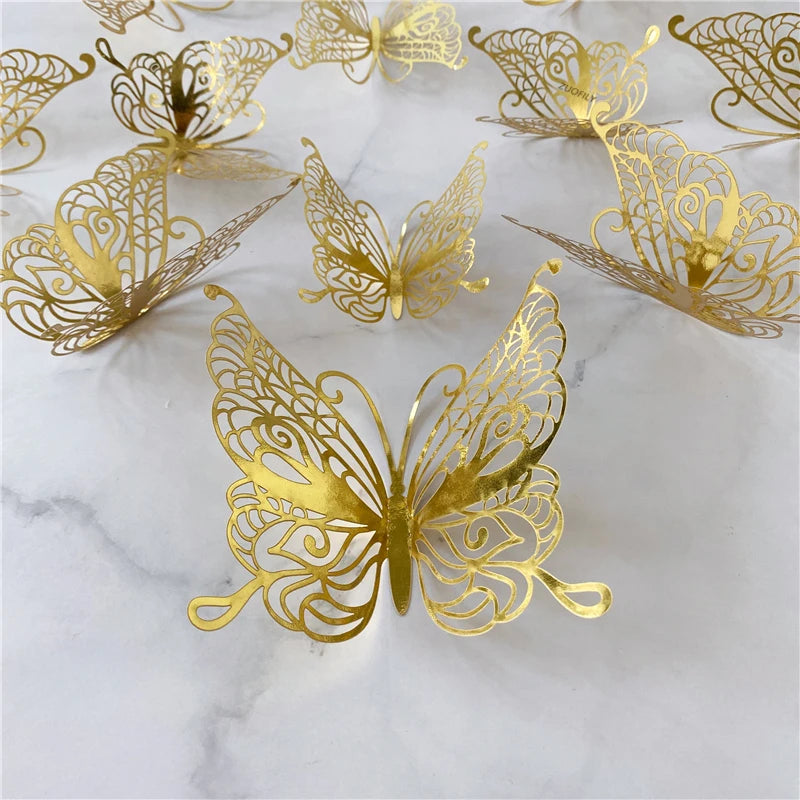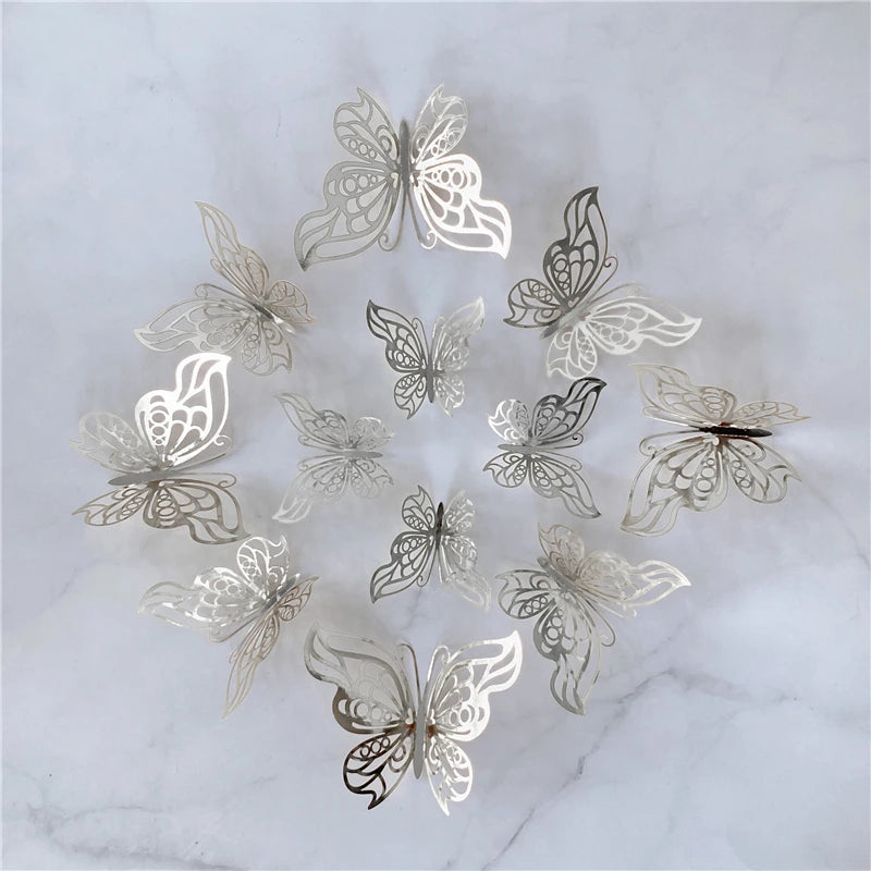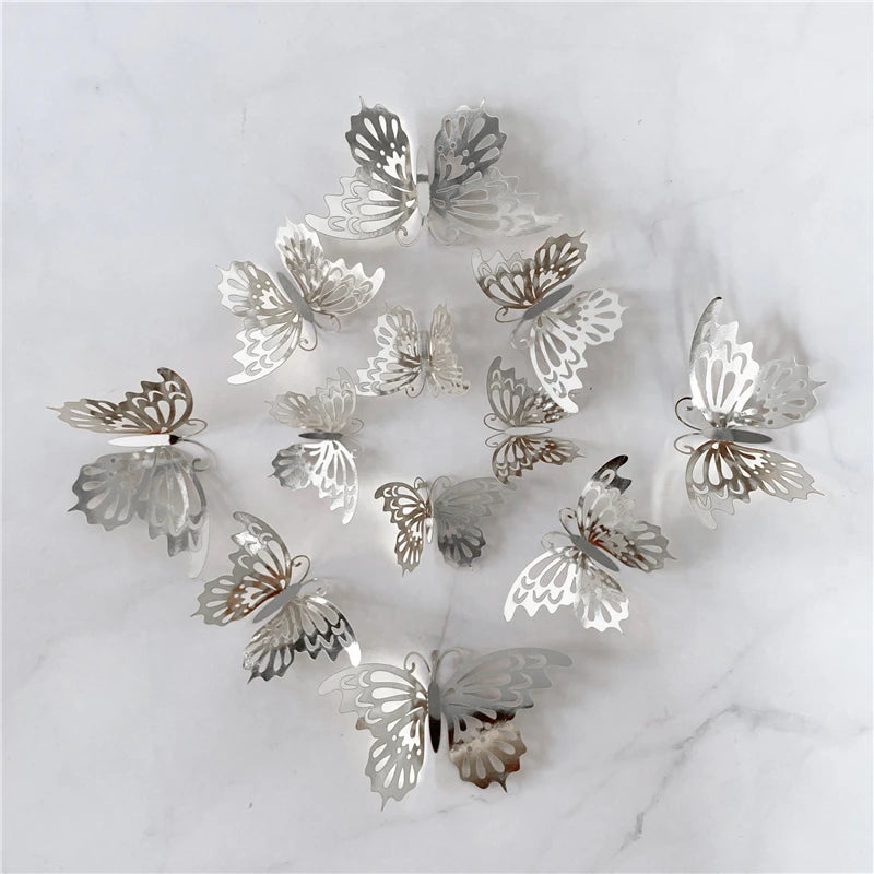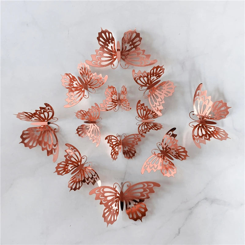 12Pcs/Set 3D Hollow Butterfly Wall Sticker Gold Silver Rose Wedding Decoration Home Decor Butterflies Decal Stickers
