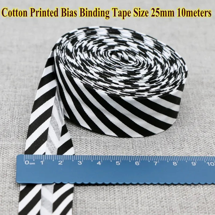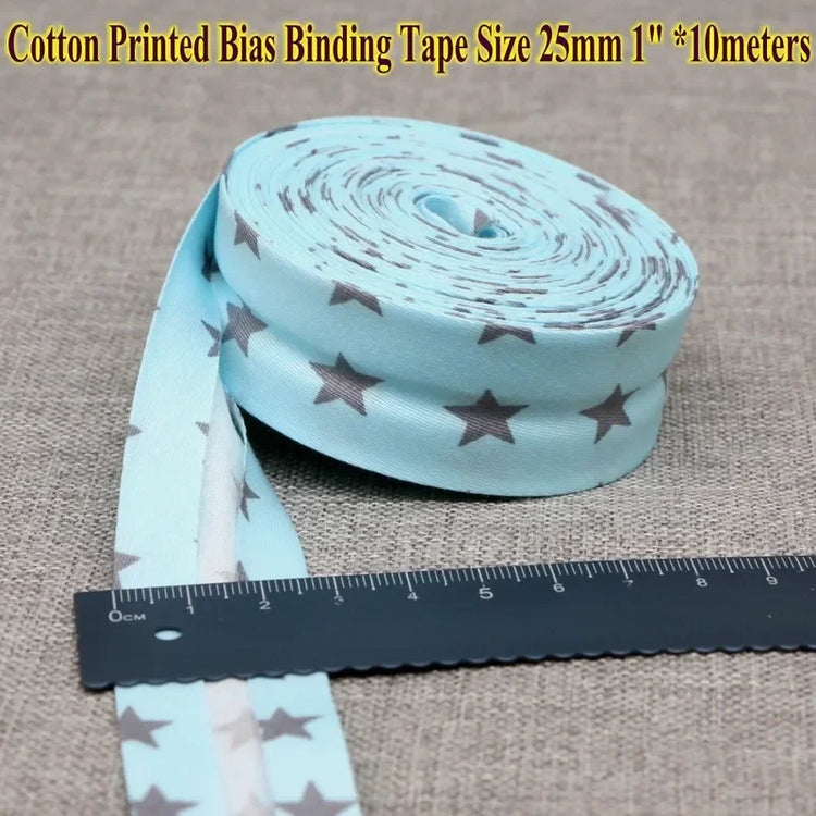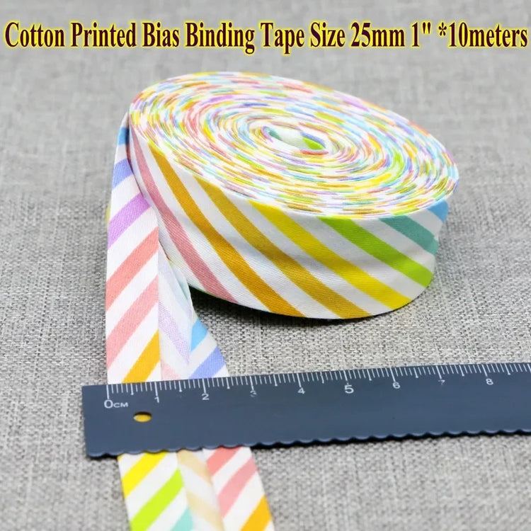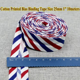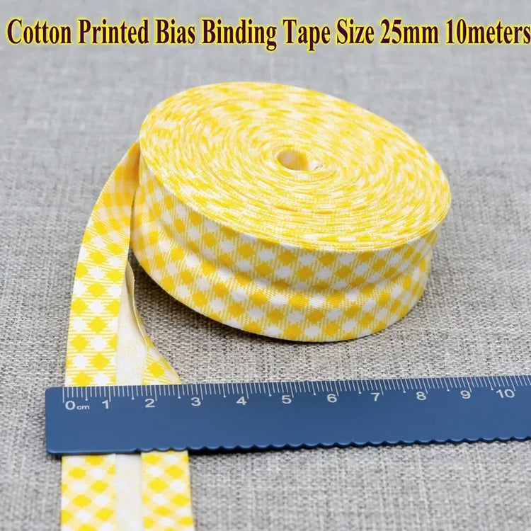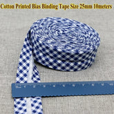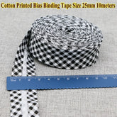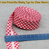 Cotton Bias Tape Ribbon Dots Grid Stripe Tartan Checked Scottish Printed 25mm 1" 10m Cotton Twill Fabric Fold