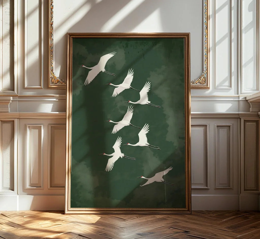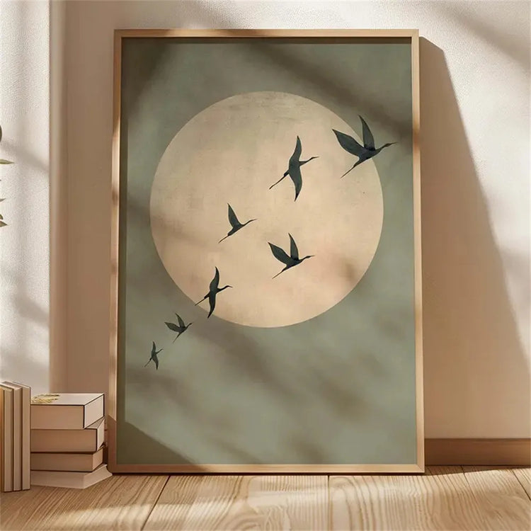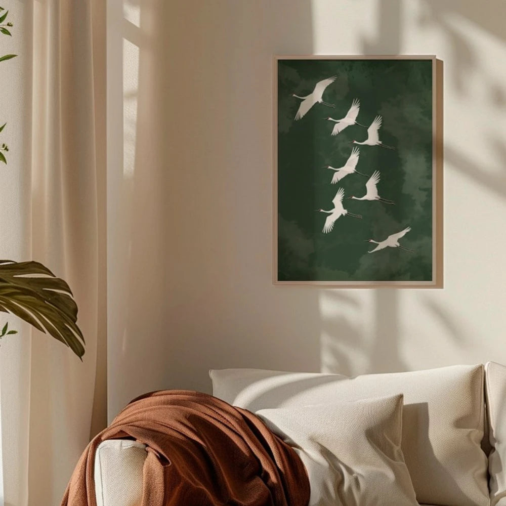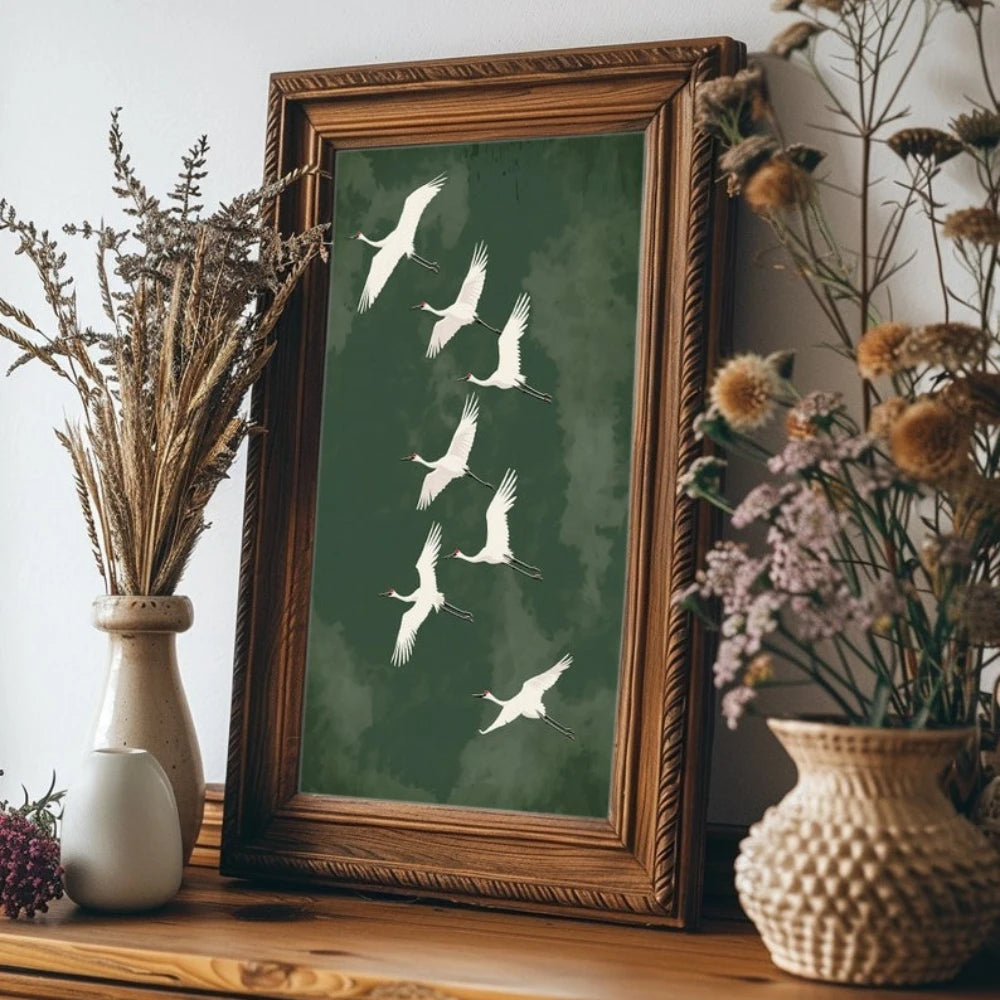 Japanese Flying Cranes White Bird Canvas Prints Poster Vintage Japandi Aesthetics Art Prints