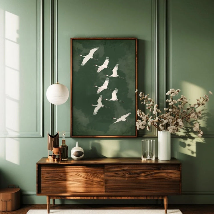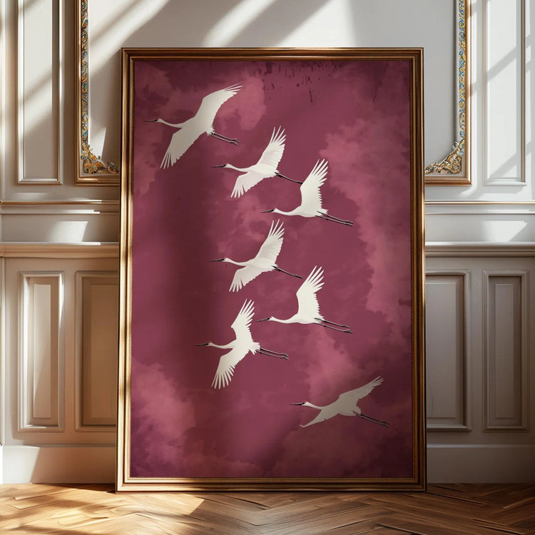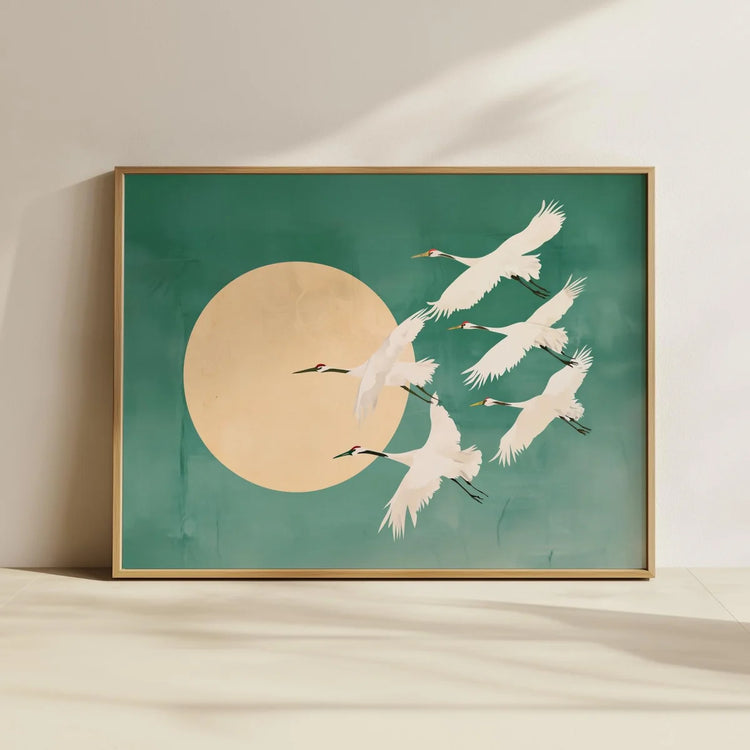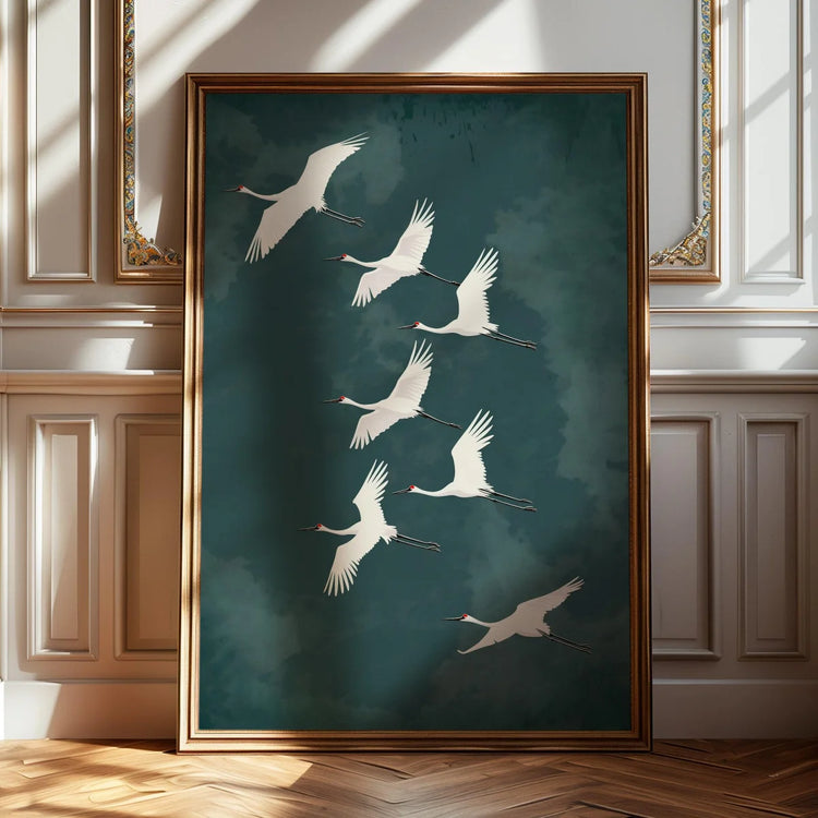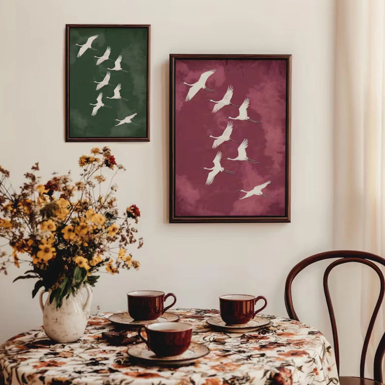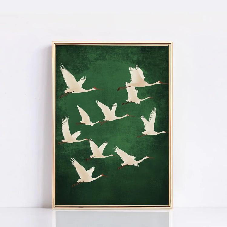 Japanese Flying Cranes White Bird Canvas Prints Poster Vintage Japandi Aesthetics Art Prints
