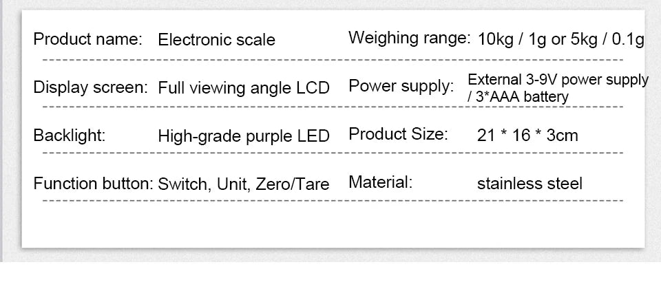 Capacity: 5kg/0.1g 10kg/1g